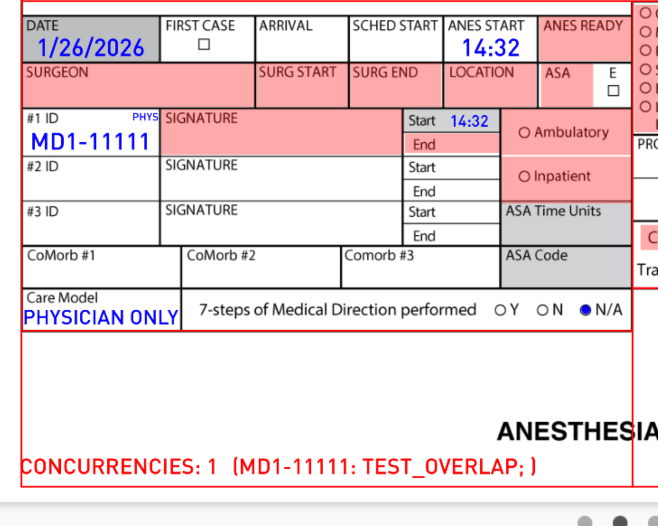 Our system automatically checks for concurrency violations to help ensure compliance with anesthesia concurrency rules. This article explains how concurrency checks work and what information you’ll see if a violation occurs.